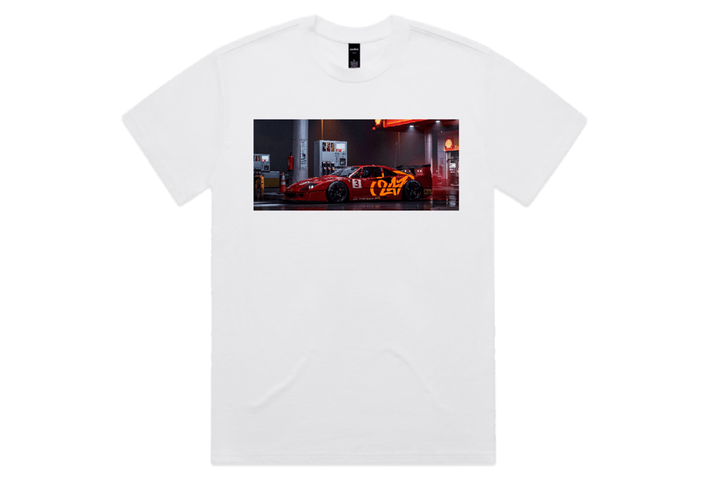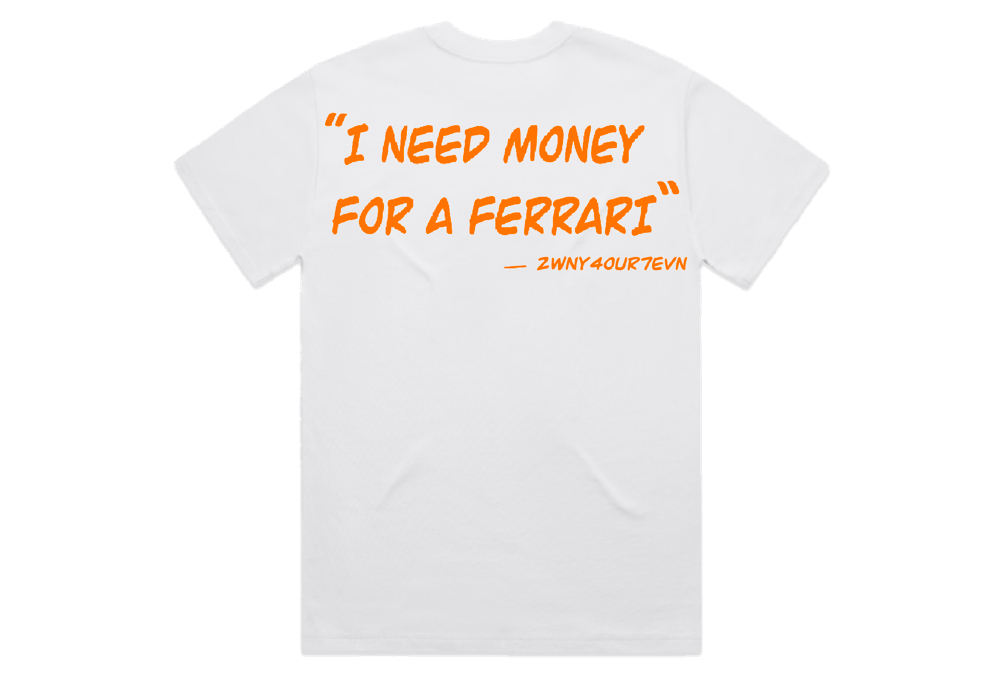 Oversized White "FERRARI" Tee W/Orange Writing
